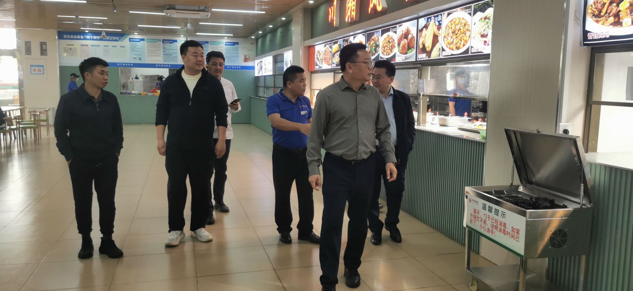 用餐前,校领导认真查看了食堂的卫生环境,详细询问有关负责人食品采购和加工流程、食材储存、烹饪设备和餐具的卫生状况,了解食堂工作人员的操作规范、各档口的经营管理、食品留样制度落实等情况,对食品卫生和食堂消防安全问题进行提醒,要求食堂严格把控食材质量关,提高从业人员的食品安全意识和操作技能,确保食品安全可追溯,及时整改存在的问题,确保校园食品安全零事故。