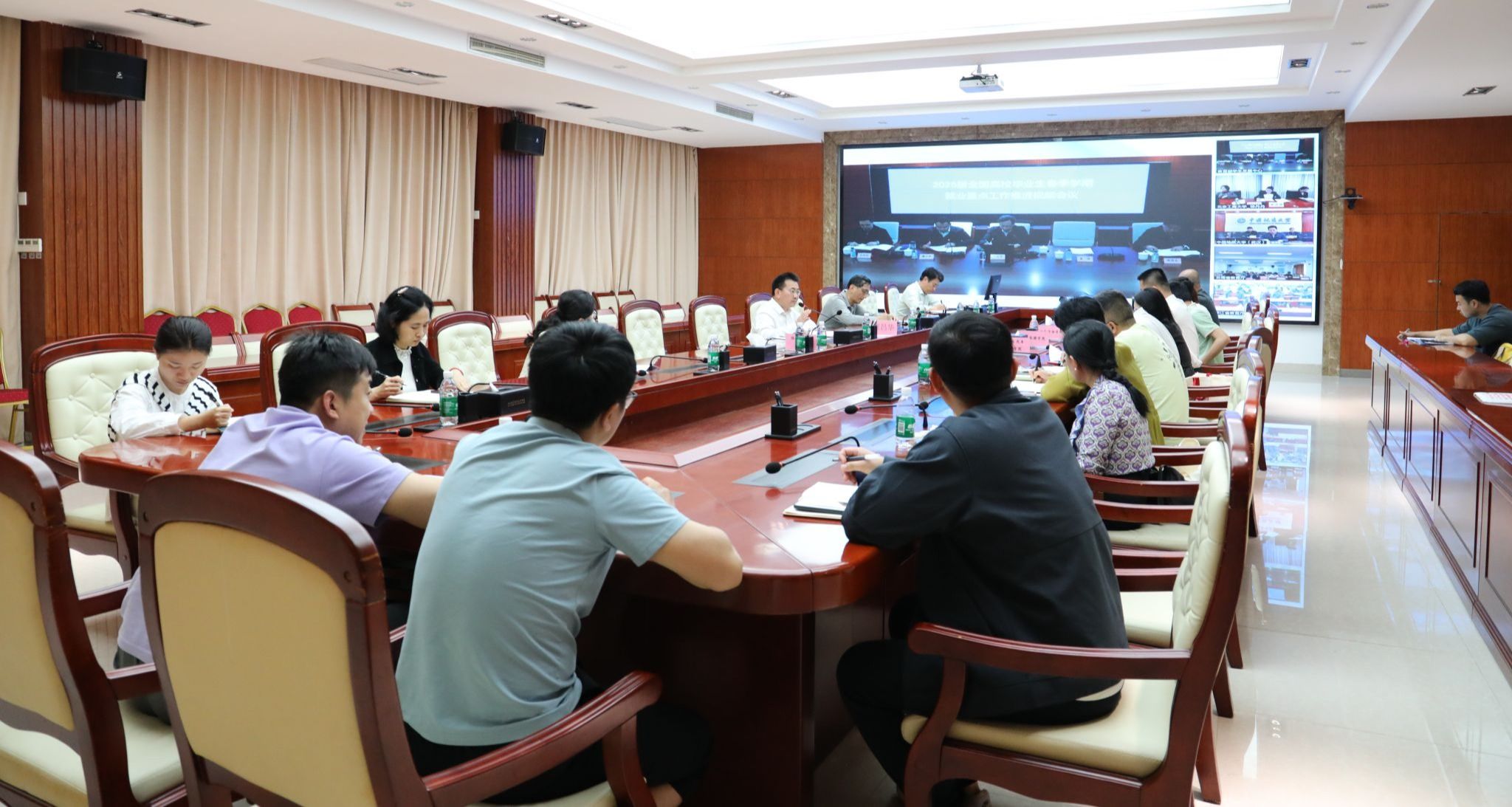 与会人员参加了由教育部高校学生司组织召开的2025届全国高校毕业生春季学期就业重点工作推进视频会议,结合学校工作实际,明确任务目标,为就业工作高质量开展奠定坚实基础。