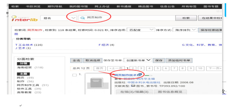2.通过图书馆网站检索出需要借阅的图书,并点击书名,打开该图书详细页面。