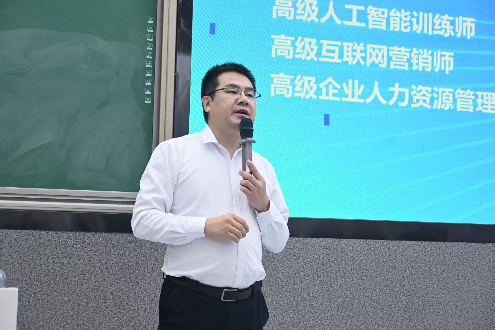 海南华普亿方教育科技有限公司培训总监、海口市“好就业”试创业实践活动项目负责人柴茂从创新创业能力提升培训、创新创业模拟线上精英体验、赛程说明及安排、奖项设置等方面进行了详细分享。海南华普亿方教育科技有限公司教务经理、阿里巴巴集团认证讲师杨清凤分享了短视频制作及直播技巧等知识,指导学生搭建智能客服系统、分析社群数据,并演示如何通过多平台运营实现流量变现。