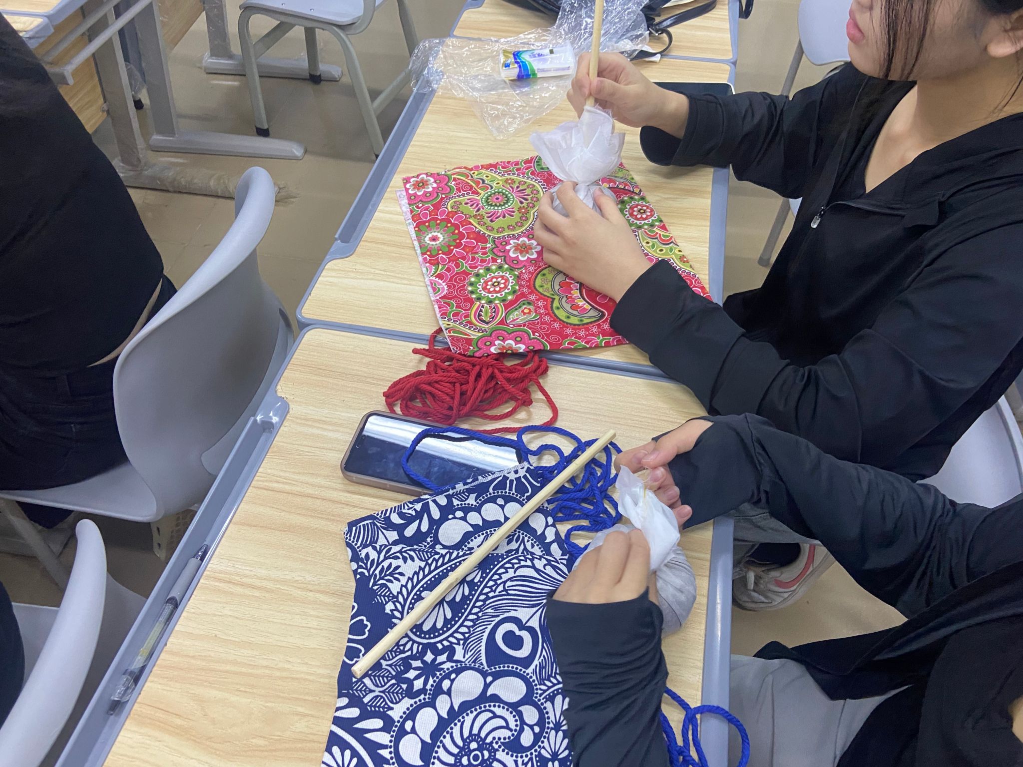 此次活动以中华优秀传统文化为纽带,结合手工制作艾草手工艺品形式展开。在辅导员的指导下,同学们通过揉捏、缠绕、捆扎等步骤,将艾草叶、棉布等材料转化为兼具实用与观赏性的艾草养生锤。现场氛围温馨愉快,同学们在艾香里建立情感联结,传递温暖关怀,缓解日常学业与生活中的不良情绪。