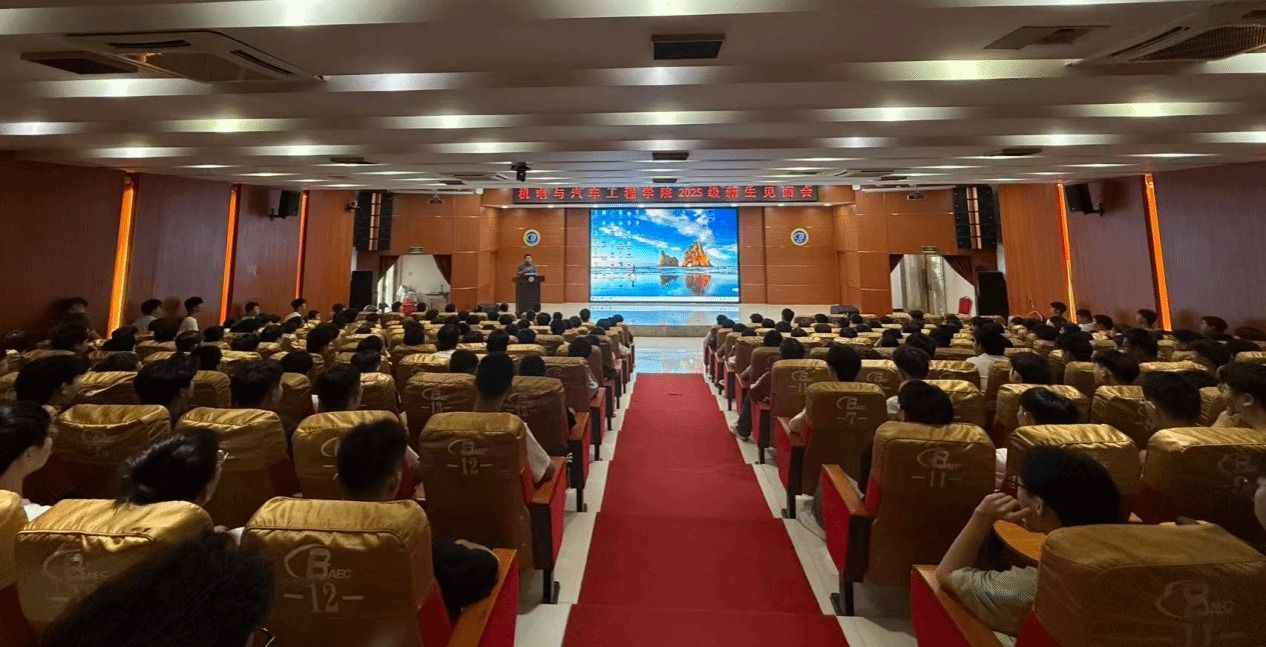 “欢迎大家加入bv伟德源自英国始于1946这个大家庭,从今天起,我们将共同书写‘技能成才、智造报国’的新篇章!”主持人的开场白,瞬间点燃了现场氛围。“大学不仅是学知识、练技能的地方,更是‘学习成长’的课堂。” 学院党总支书记彭陈俊以《做 “心智成熟” 的海经贸机电人》为主题,为新生们带来了干货满满的“第一课”。他从四个维度,为新生们勾勒出成长的蓝图:爱校荣校,筑牢初心;认清自我,锤炼本领;包容相处,温暖同行;胸怀理想,担当作为。