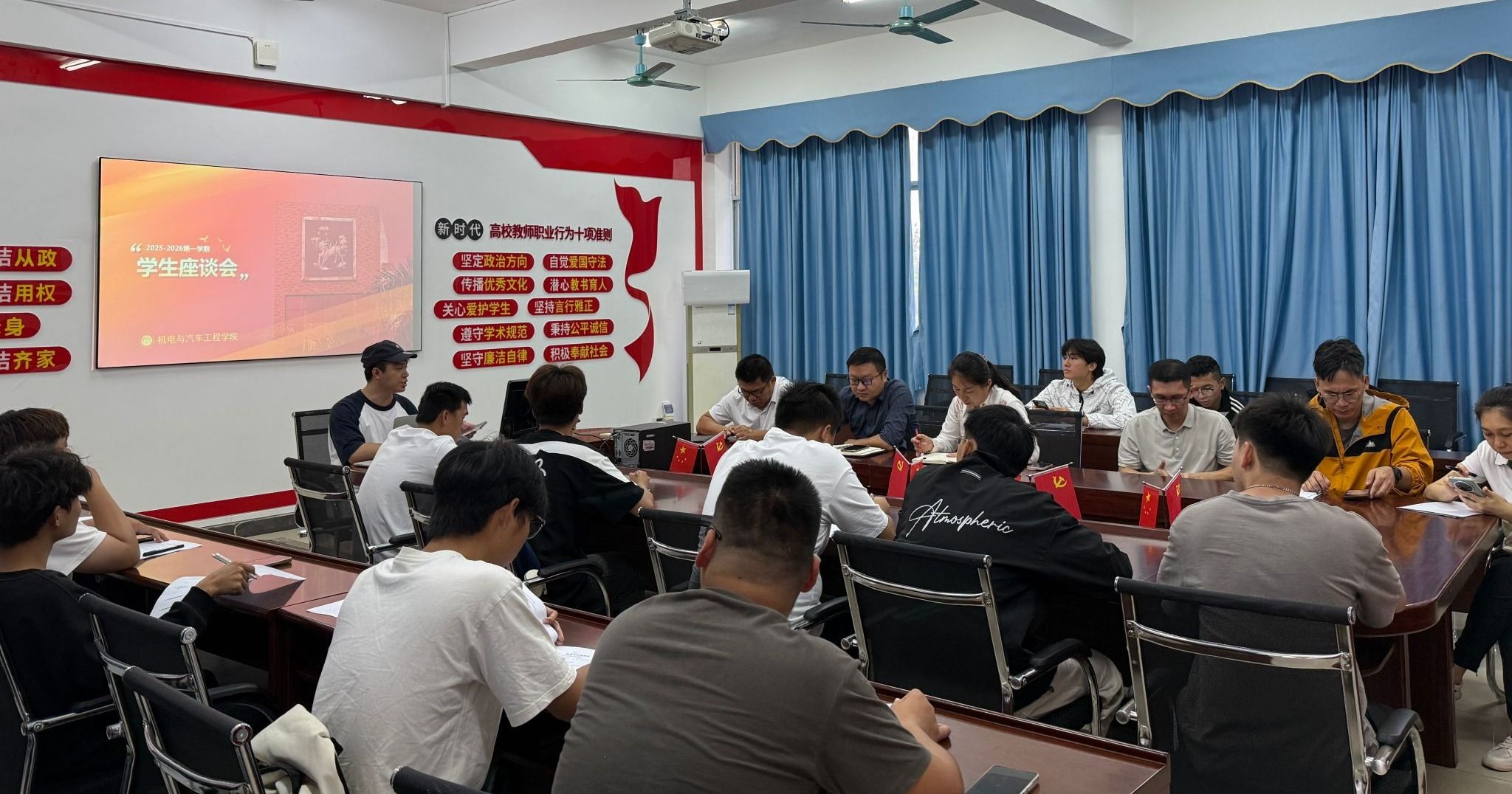 学生代表们放下顾虑、畅所欲言,将日常学习、生活中遇到的困惑和建议如实反馈,围绕课程设置、实训设备使用、专业学习规划、就业指导服务、宿舍生活保障、校园活动开展等多个方面提出了自己的疑问和建议。针对学生们提出的问题,学院领导和老师们逐一进行回应和解答。对于能够现场解决的问题,相关负责人当场明确解决方案和完成时限;对于需要进一步调研协调的复杂问题,表示会后将及时对接相关部门,尽快拿出切实可行方案,并通过班级群、学工办公告等渠道及时反馈进展。