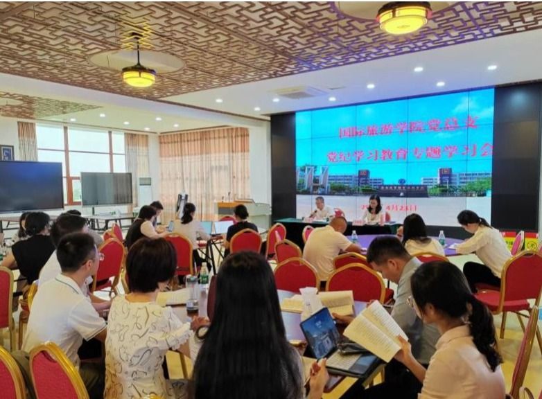 2024年4月23日,国际旅游学院党总支举行党纪学习教育读书班首次集中学习,加强党的纪律建设,推动全面从严治党纵深发展,引导教师党员进一步学纪、知纪、明纪、守纪,强化政治意识。