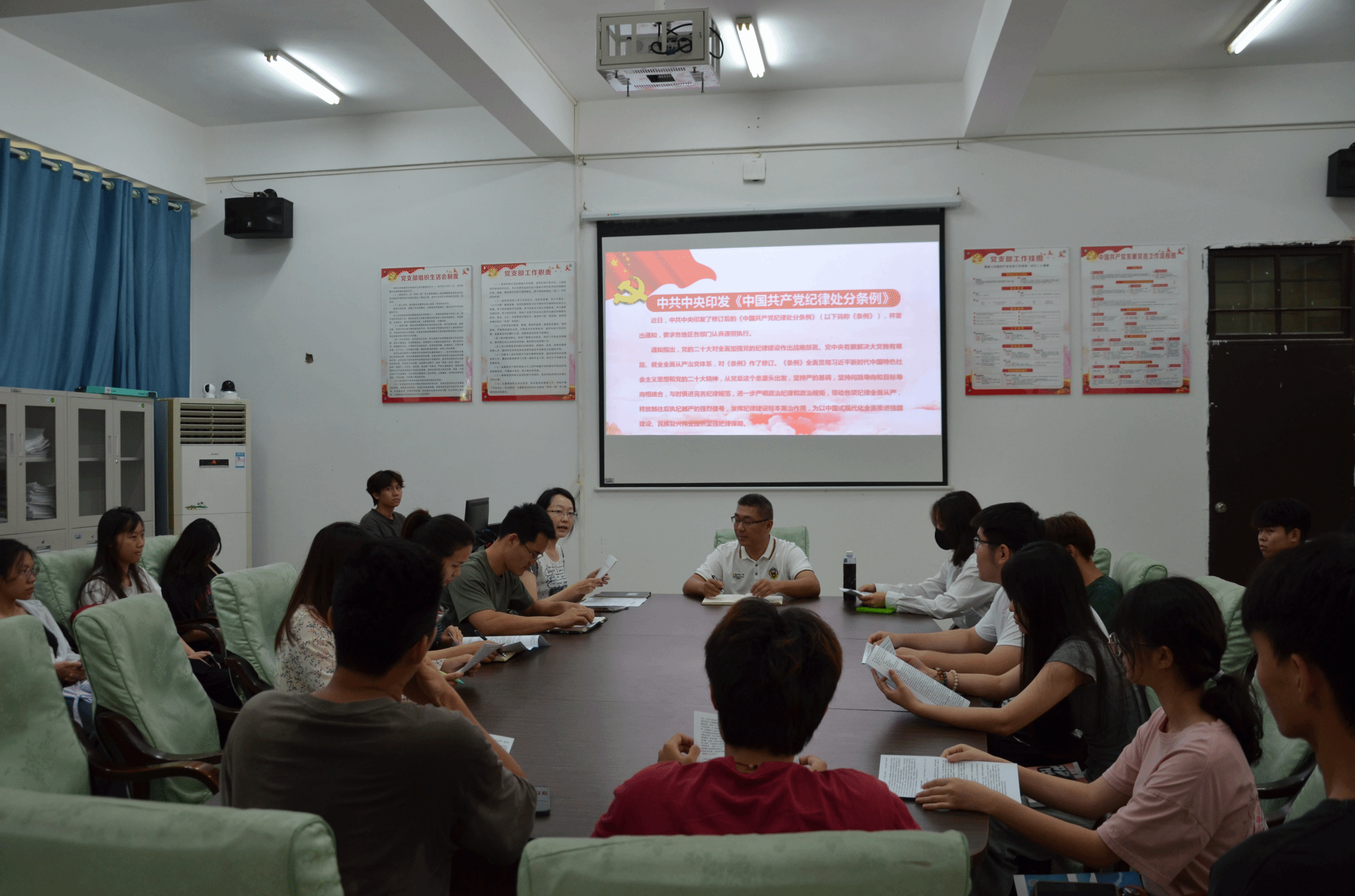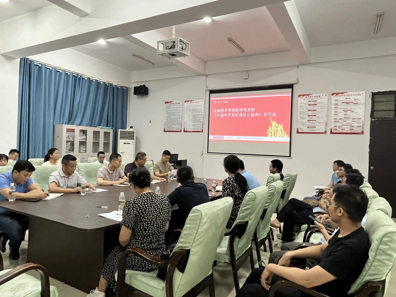 2024年4月22日,信息技术学院党总支召开理论中心组学习会,专题学习《中国共产党纪律处分条例》。党总支全体委员参加。