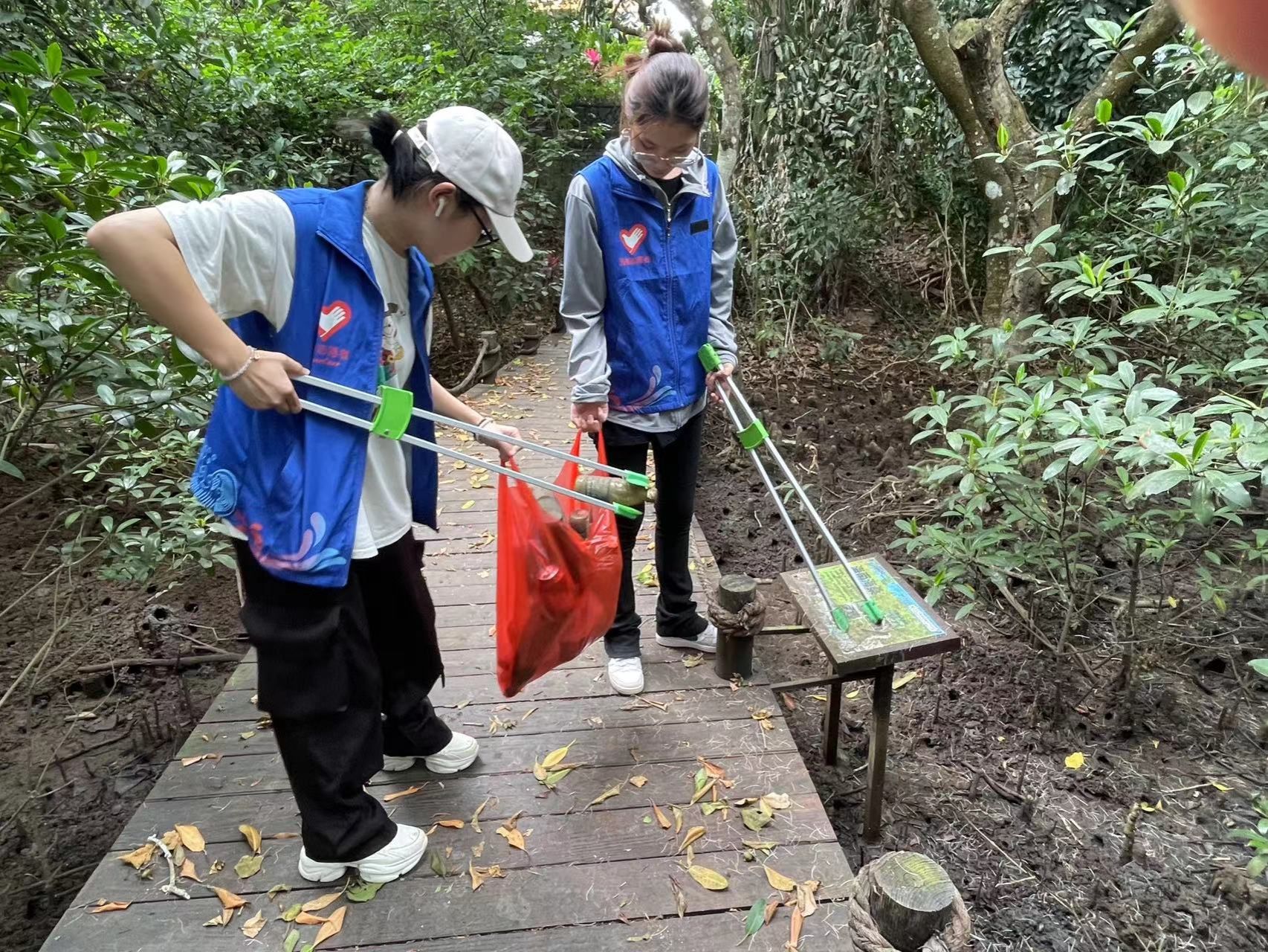 近日,国际贸易学院“环保轻骑兵”志愿队的同学们前往东寨港国家级红树林自然保护区,开展“青春绿动自贸港 携手呵护红树林”主题志愿服务活动,深入践行“绿水青山就是金山银山”生态文明建设理念,提升大学生生态环保意识。