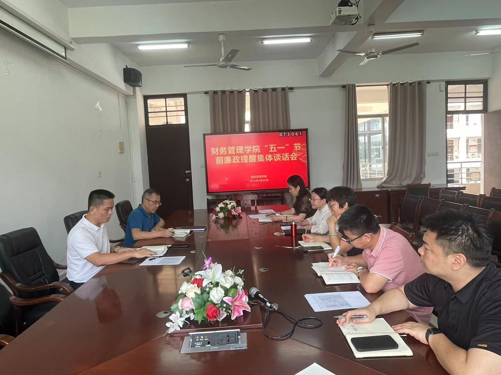 2024年4月30日,财务管理学院召开党政班子成员“五一”节前廉政提醒谈话会,进一步严明假期政治纪律、政治规矩,净化节日风气,持续正风肃纪。