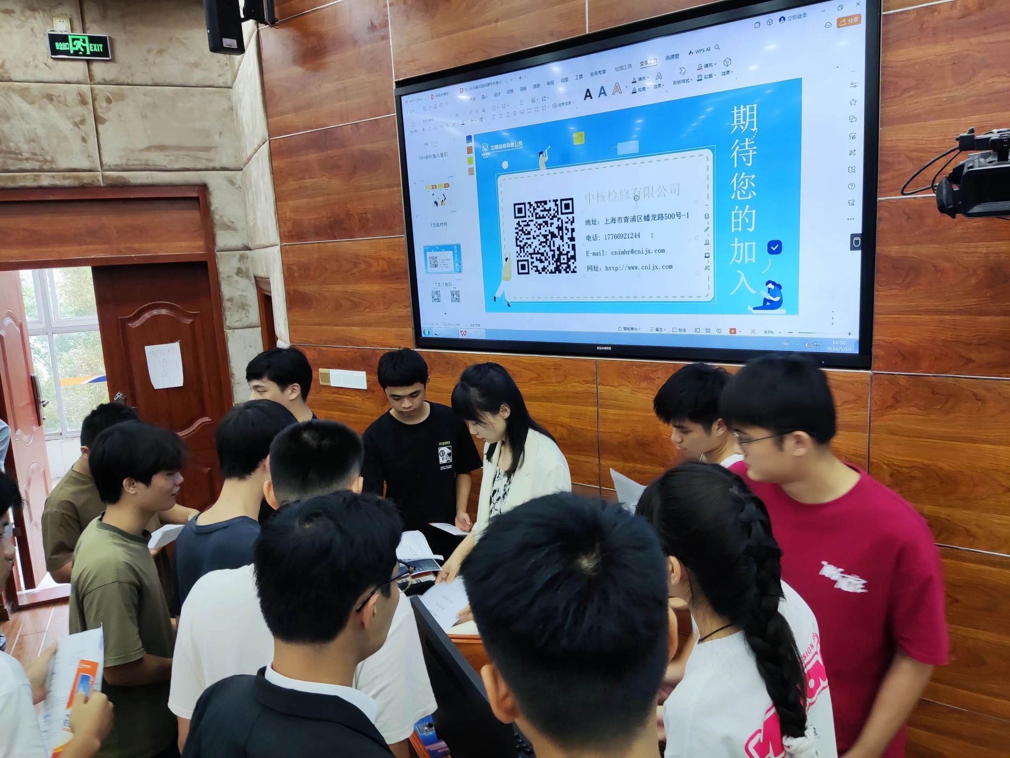 中核检修有限公司昌江分公司人事专员袁梦结合宣传手册、多媒体课件、企业宣传片等方面,向同学们全面介绍了企业概况、公司文化、招聘岗位等具体内容,着重对人才培养、入职培训、待遇晋升进行讲解。她建议同学们提高对当前形势的了解和把握,提前规划好自己的未来,明确职业目标。