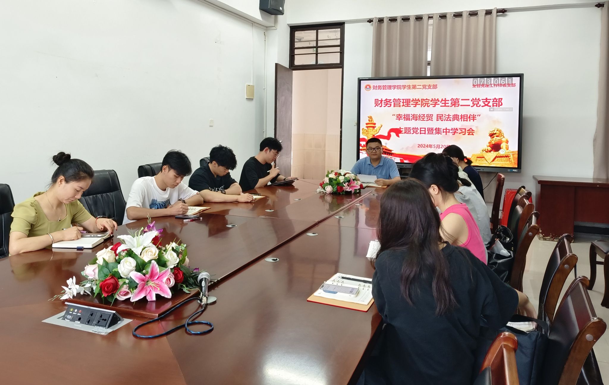 2024年5月20日,财务管理学院学生第二党支部开展“幸福海经贸 民法典相伴”主题党日活动暨2024年第13次常态化集中学习,专题学习《中华人民共和国民法典》相关内容。