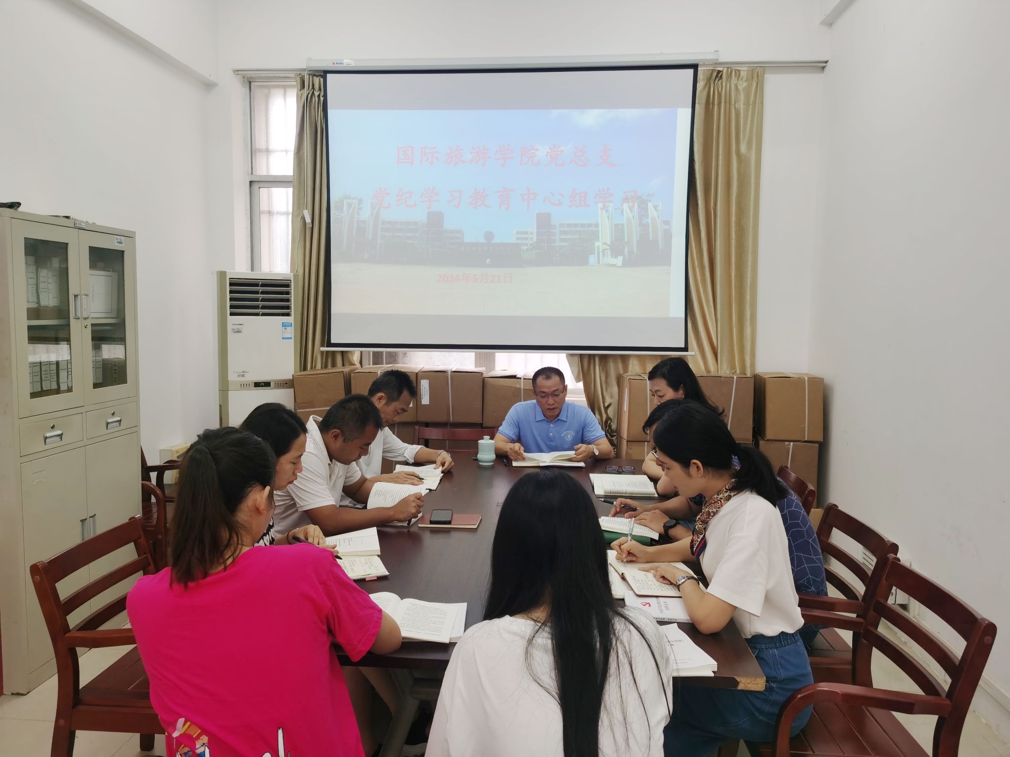 2024年5月21日,国际旅游学院党总支召开理论学习中心组学习会,开展《中国共产党纪律处分条例》第二次集中学习。