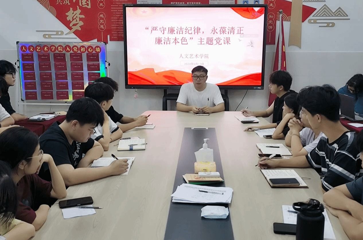 近日,人文艺术学院党总支学生党支部为同学们讲授“严守廉洁纪律,永葆清正廉洁本色”主题党课,全体入党积极分子参加。