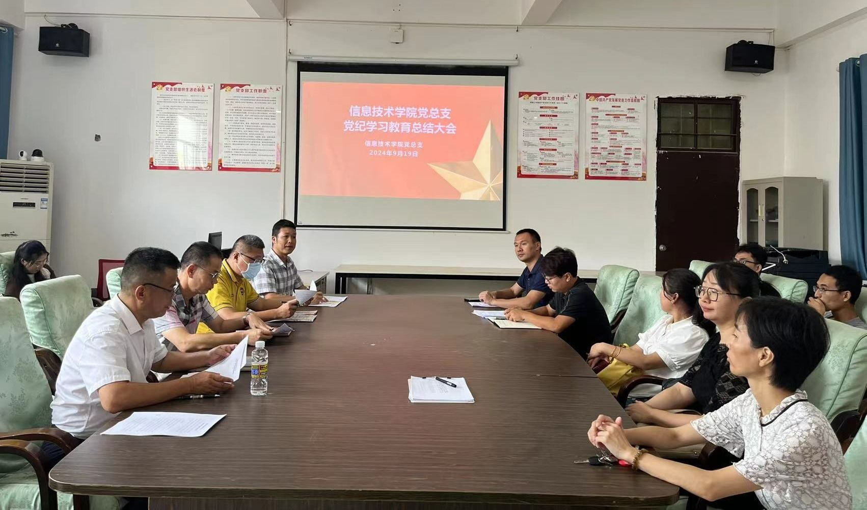2024年9月19日,信息技术学院党总支召开会议,总结党纪学习教育。学院全体党员参加会议。
