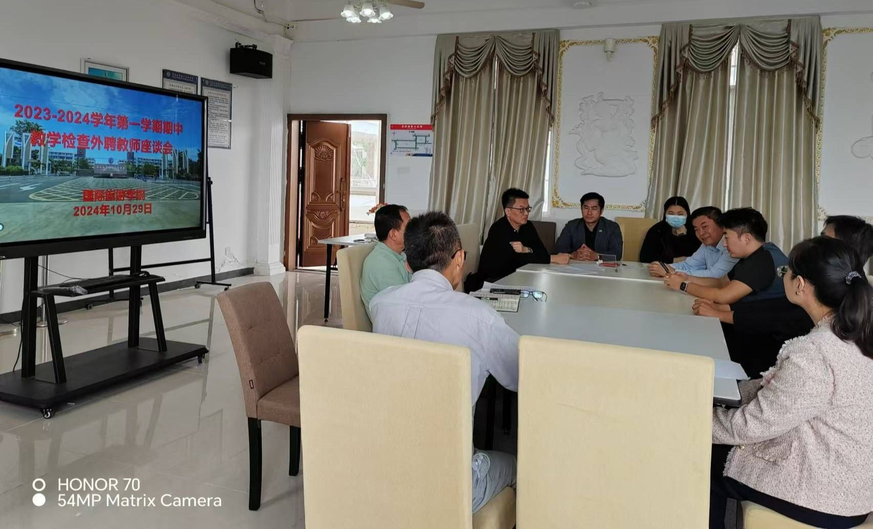 2024年10月29日,国际旅游学院召开外聘教师座谈会,共同探讨人才培养的新思路,加强外聘教师队伍建设,提高教育教学质量。