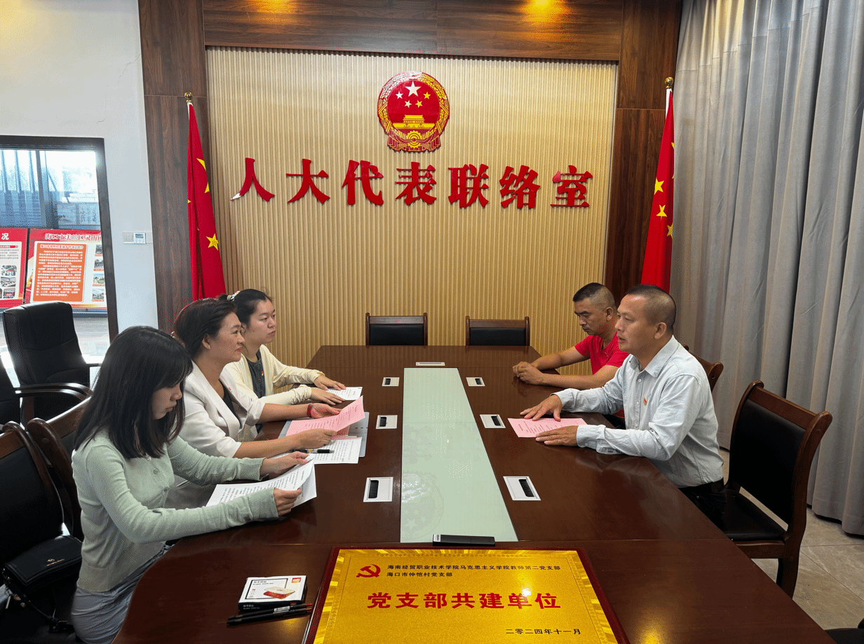 海口市仲恺村党支部周国豪同志主持仪式,马克思主义学院教师第二党支部书记钟慧同志、党支部教师党员代表以及海口市仲恺村党支部的党员代表参加仪式。