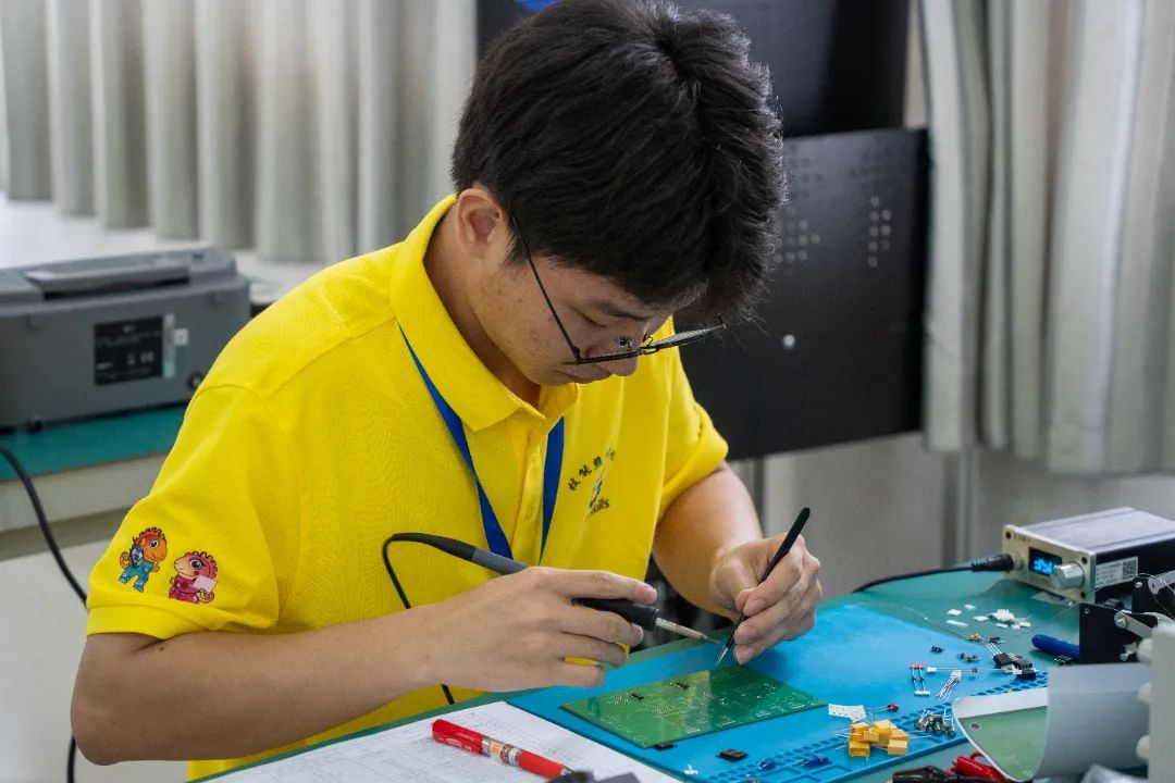 在各类竞赛中,许仕灵展现出了出色的团队协作精神。在2024年海南省职业院校技能大赛高职组“智能电子产品设计与开发”赛项备赛过程中,电路板突发短路,数据瞬间全部丢失,而当时距离比赛只有三天。许仕灵没有丝毫退缩,他迅速稳住团队军心,带领成员们从零开始,重新梳理电路、逐字重写程序,与时间赛跑。最终,在赛前成功完成调试,斩获团体二等奖。