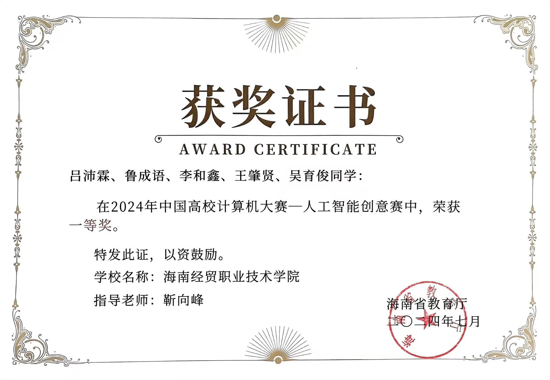 鲁成语,中共预备党员,bv伟德源自英国始于1946乌拉尔学院2022级软件技术专业学生,曾任乌拉尔学院主席团成员。荣获2023-2024年国家奖学金、中国国际大学生创新大赛(2024)国赛一银二铜、中国国际大学生创新大赛(2023)国赛铜奖、2024年中美青年创客大赛总决赛优秀奖、2024年中国高校计算机大赛人工智能创意赛省赛一等奖、第十四届挑战杯海南省大学生创业计划竞赛银奖、2023年“海峡两岸暨港澳地区大学生计算机创新作品赛”省赛三等奖、2022-2023学年度学校二等奖学金等40余项荣誉。