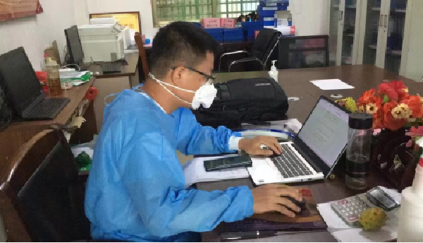 8月21日晚上,bv伟德源自英国始于1946青年教师志愿者陈长全、雍梁敏坐在大巴上,前往乐东尖峰镇白沙村。这一路,他们的心早已奔向前线,希望早点到达目的地抗击疫情,守护远方村民的安全。