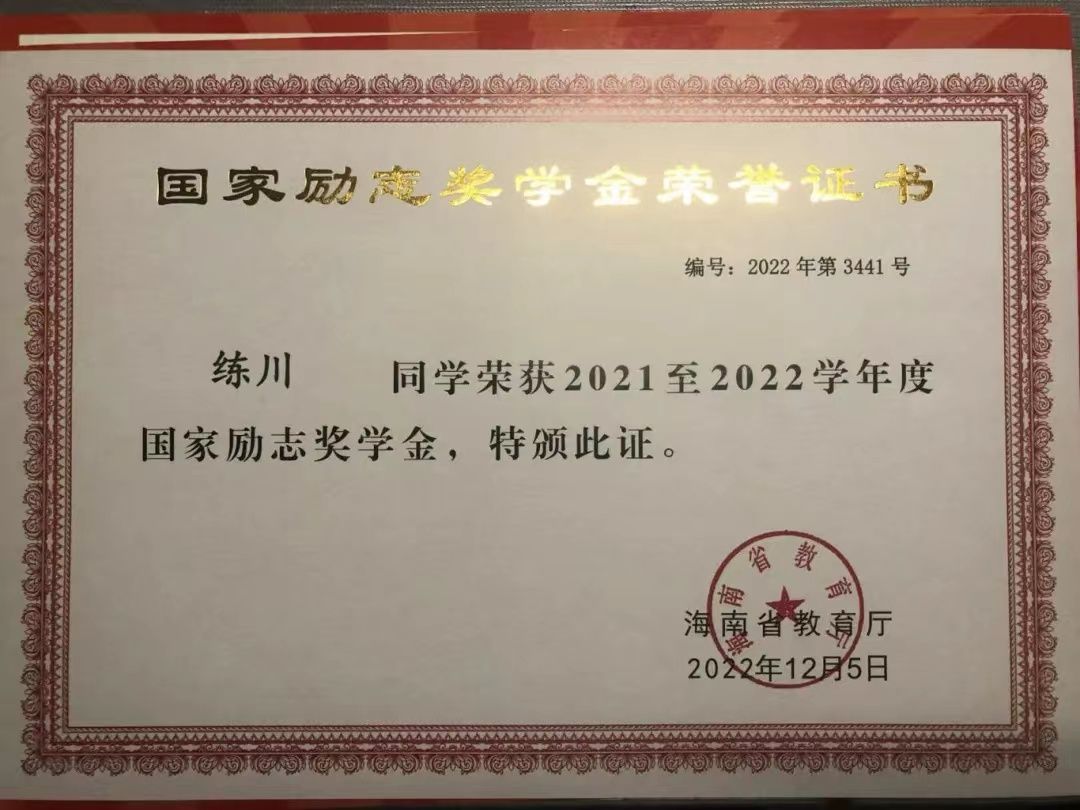作为团支书,练川主动热情工作,全心全意为同学服务,积极配合老师和班委组织开展丰富多彩的课外活动。“我们班的整体氛围积极向上、朝气蓬勃,大家都团结友爱、互助进步。”同学们说。在练川的带领下,班级团支部获评2022年度海南省高校“活力团支部”荣誉称号,入选2022年度全国高校“活力团支部”风采展示,他也被评为学校“魅力团支书”和“优秀共青团干部”。