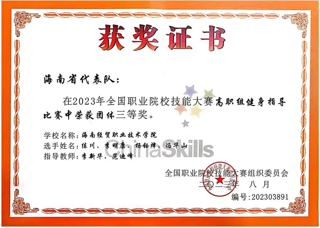 练川始终把“天道酬勤,全力以赴”铭记于心。他刻苦学习,连续两年专业综合测评成绩排名第一,以优异的表现荣获国家励志奖学金和学校一等奖学金。在保证完成学业的同时,他充分利用课余时间,考取了1+X体重管理师、1+X老年康体指导、全国跳绳初级和中级教练员、定向运动二级裁判员、田径二级裁判员、游泳救生员、全国计算机一级等多个职业技能证书。