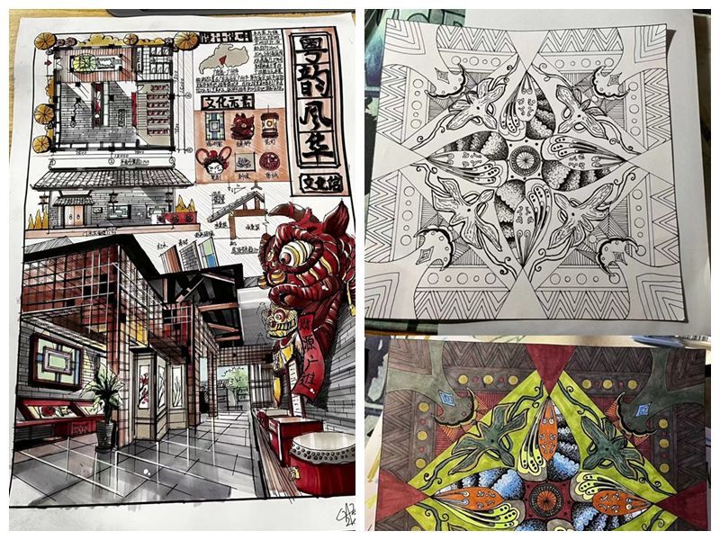 “未来,对只有二十岁的我们来说是一条漫长的路。要有勇敢拼搏的精神,不害怕艰难险阻,不畏惧未来的不确定性。要做自己,做自己热爱的事。”曾经的甘霖,面对专业技能上的不足迷茫过无助过,但她没有一直沉浸在这种低迷的情绪中,而是利用寒暑假,独自前往江西九江庐山西海艺术学校进行学习,提升专业技能。日复一日的绘图、一遍又一遍修改图纸成了甘霖每天的生活。虽然感到枯燥、乏味,但是她说:“坚持下来的每一笔、每一画都将成为我能力提升的一步步阶梯。”这样的经历为她在手绘设计方面取得的成绩打下了坚实基础。“我很感谢当时的自己,所有的努力都有了积极回报,这是我成就感和自信心的来源”。